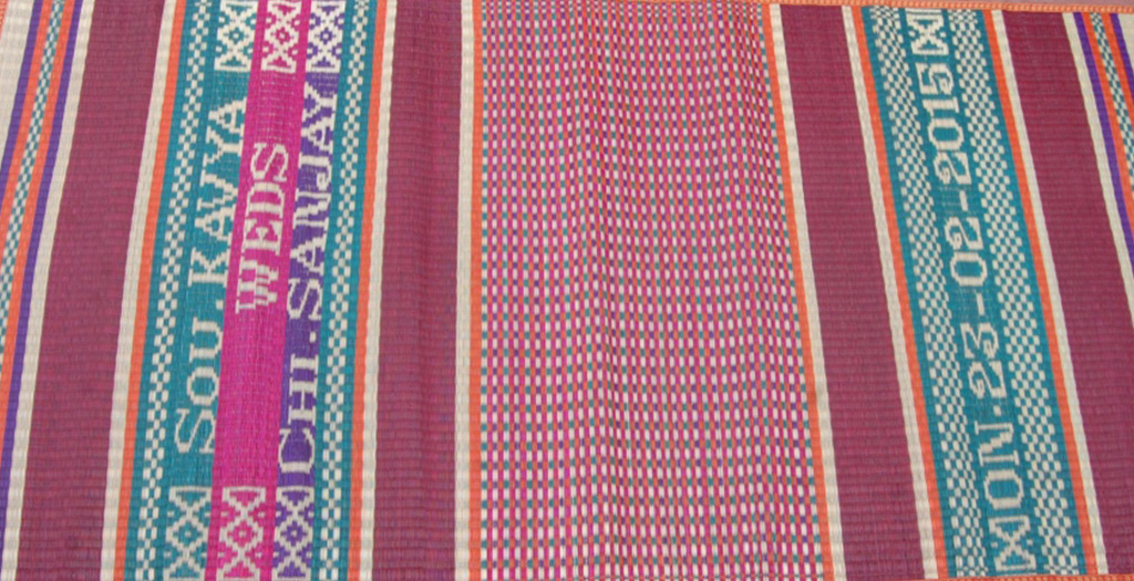 They are Finer Mats used as gift for wedding ceremonies. The bride and the groom's names and the wedding date are woven in the mat to make the occasion memorable.
